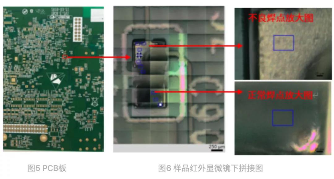 樣品2:PCB板焊錫位置異物。無需前處理,樣品直接放置在紅外顯微鏡下,反射法測試。