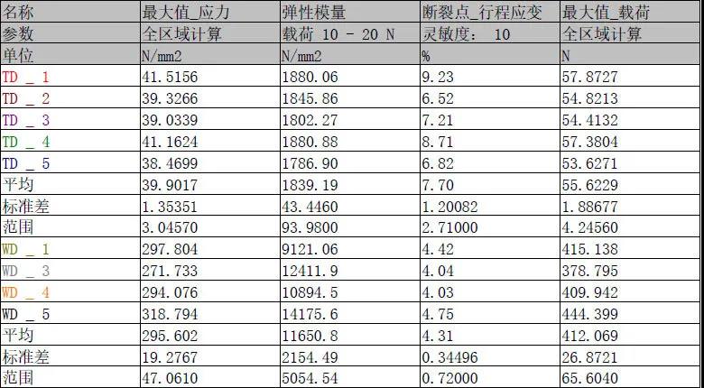 裁切方向不同的LCP膜斷裂方式和拉伸強度變化很大,圈中為W向曲線