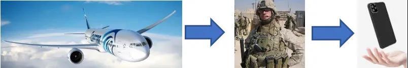 芳綸纖維具有高強度、高模量、耐高溫的優異性能,具有突出的耐沖擊和電磁波透過性等特性。將芳綸與薄鋁板、環氧無緯布交疊熱壓后形成的超混復合層板,具有很高的比模量和比強度,抗疲勞壽命是鋁合金板的100倍~1000倍,可用于飛機的機身等部位。芳綸纖維制備的樹脂基增強復合材料應用于飛機客體中,可使飛機總重量大大減輕。隨著軍用防護服引入,凱夫拉爾芳綸纖維防彈衣與防彈盔不僅體積小、質量輕,而且防彈效能提高了40%。防彈芳綸無緯布與高性能聚乙烯薄膜制成的軟質防彈背心,具有更好的防彈性能和耐熱性。